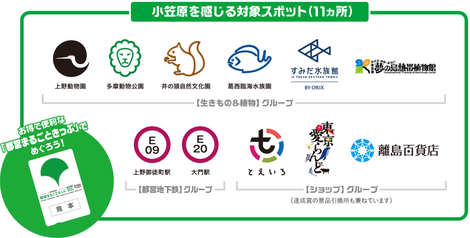 このスタンプラリーは、小笠原の固有種を飼育している動植物園や水族館、小笠原の物産品等を取り扱っているショップと、都営地下鉄の駅など11カ所の対象スポットを訪れていただくことで、普段は片道24時間かけて船旅で行く小笠原へ、電車で気軽に遊びに行ったような気分になれる企画です。
